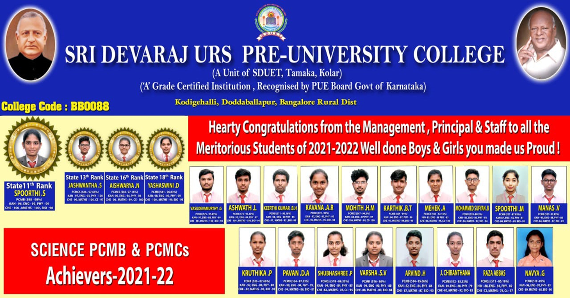 PCMB stream is wide range of opportunities in the Play Ground of Medical, Agriculture, and engineering too. It is a platform for choosing any degree after 12th class. Choose SDUPUC to be NEET, KCET and JEE Rank Holder.